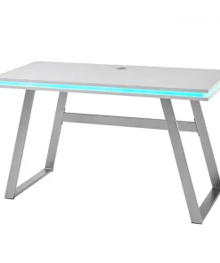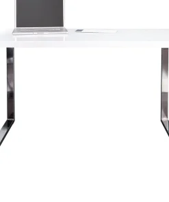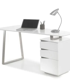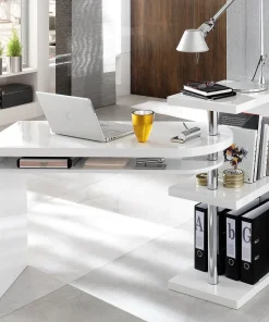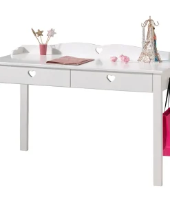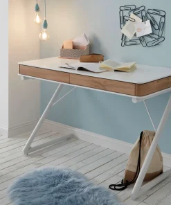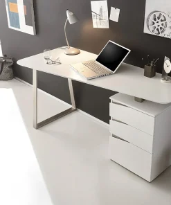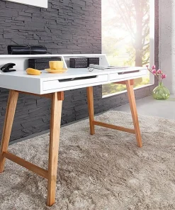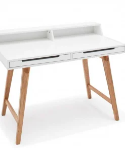 Bureau secrétaire avec rangement blanc laqué mat et bois massif