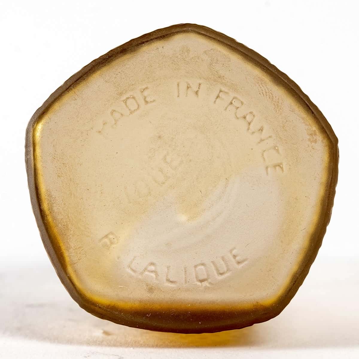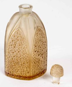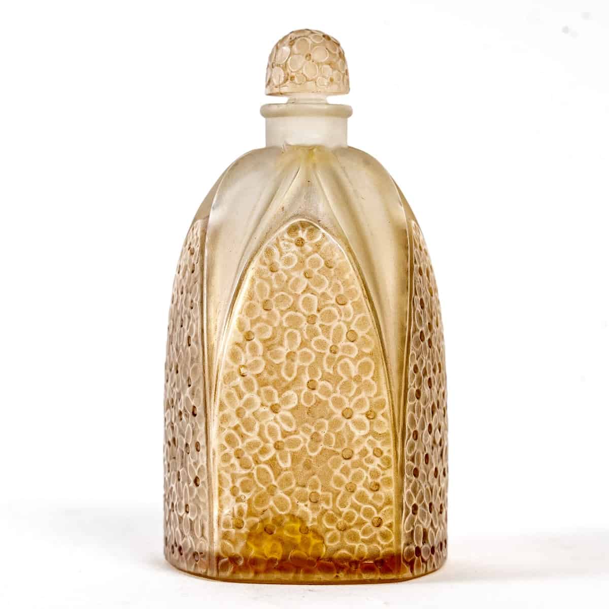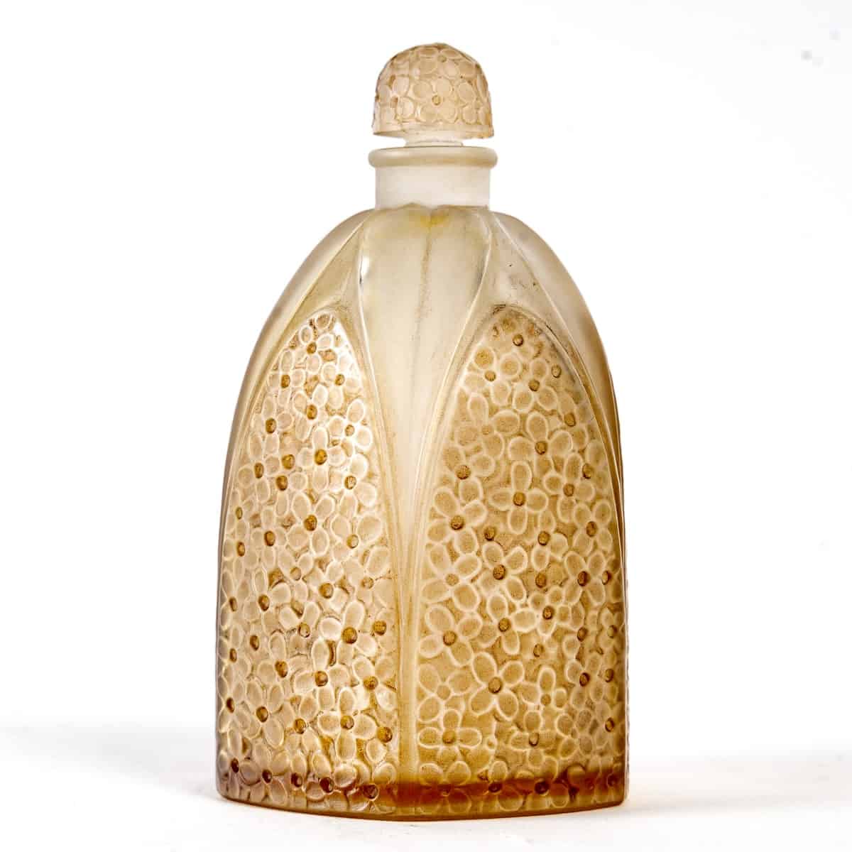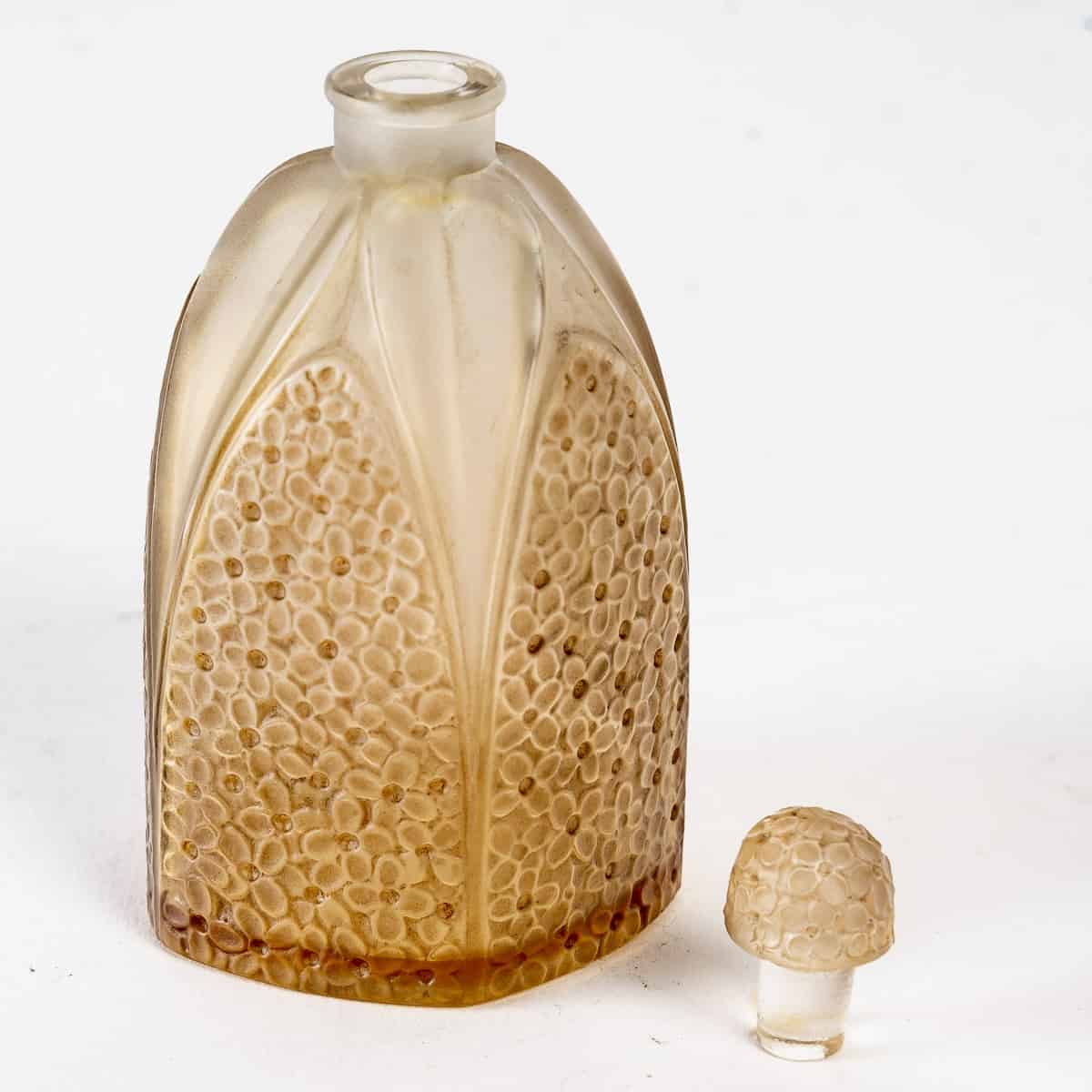 Flacon « Le Lilas » en verre blanc patiné sépia de René Lalique pour Gabilla créé en 1925.