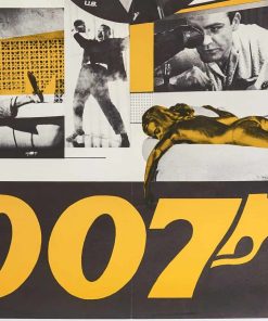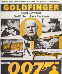 Affiche promotionnelle dédiée au film James Bond 007 – Goldfinger, troisième opus officiel de la saga James Bond, sorti en 1964. Il s’agit ici d’une ressortie des années 1980. Ce volet emblématique marque un tournant majeur dans la franchise, notamment par l’introduction d’éléments devenus iconiques.