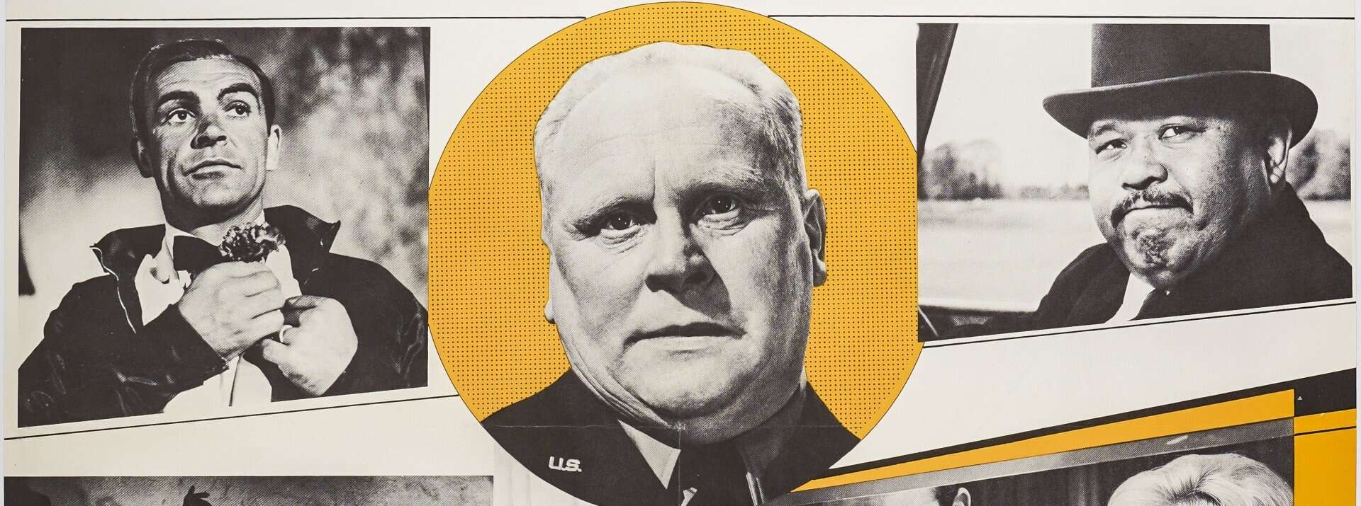 – Gert Fröbe, alias le redoutable Goldfinger, encadré dans un cercle jaune,