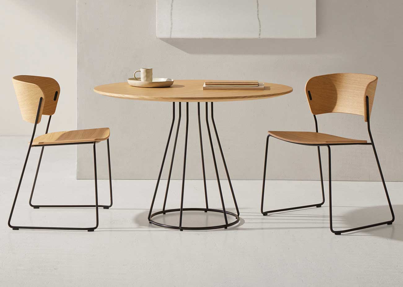 Pour compléter l’ensemble, la chaise Arc peut être associée à la table ronde de la même gamme, disponible en diamètres de 80 cm ou 90 cm. Ensemble, ces pièces créent un espace harmonieux et cohérent, où le design élégant et la fonctionnalité se rencontrent pour offrir une expérience d’assise exceptionnelle. Que ce soit pour une salle de réunion, un bureau, une salle de restaurant ou un espace détente.