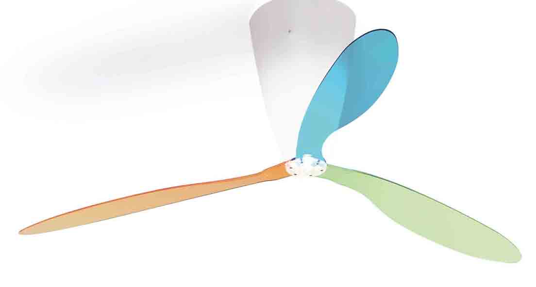 Afin de ne pas interférer avec la lampe, les pales ont été conçues en méthacrylate transparent ou coloré. Son diffuseur en polycarbonate blanc opale continue ainsi d’éclairer la pièce d’une lumière diffuse et agréable lorsque le ventilateur est en marche.