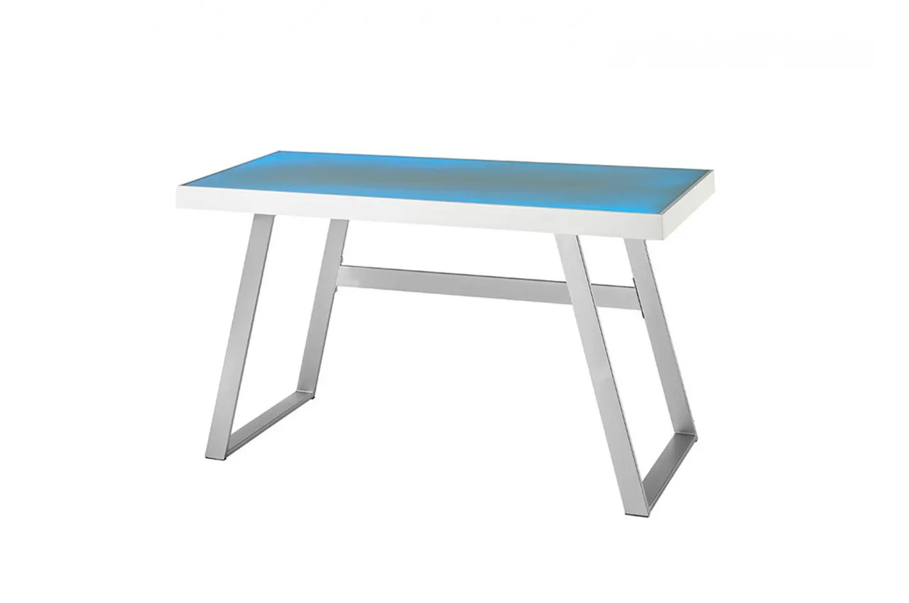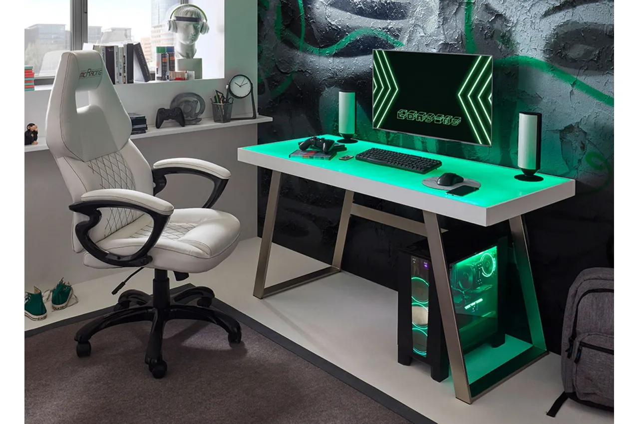 Bureau à LED blanc laqué mat en verre et métal