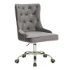 Un coin cosy dans votre intérieur que vous souhaitez aménager ? Pourquoi pas agencer un coin de travail avec un bureau ainsi que cette chaise en velours au coloris design pour un confort assuré une fois installé dessus. Une assise moelleuse sur un pieds pivotant à roulettes accompagne cette chaise. Une chaise de bureau cosy en velours gris matelassé, parfaite pour un intérieur coloré et lumineux. Elle pourra se placer aussi bien autour d’une table de salle à manger que dans un bureau.