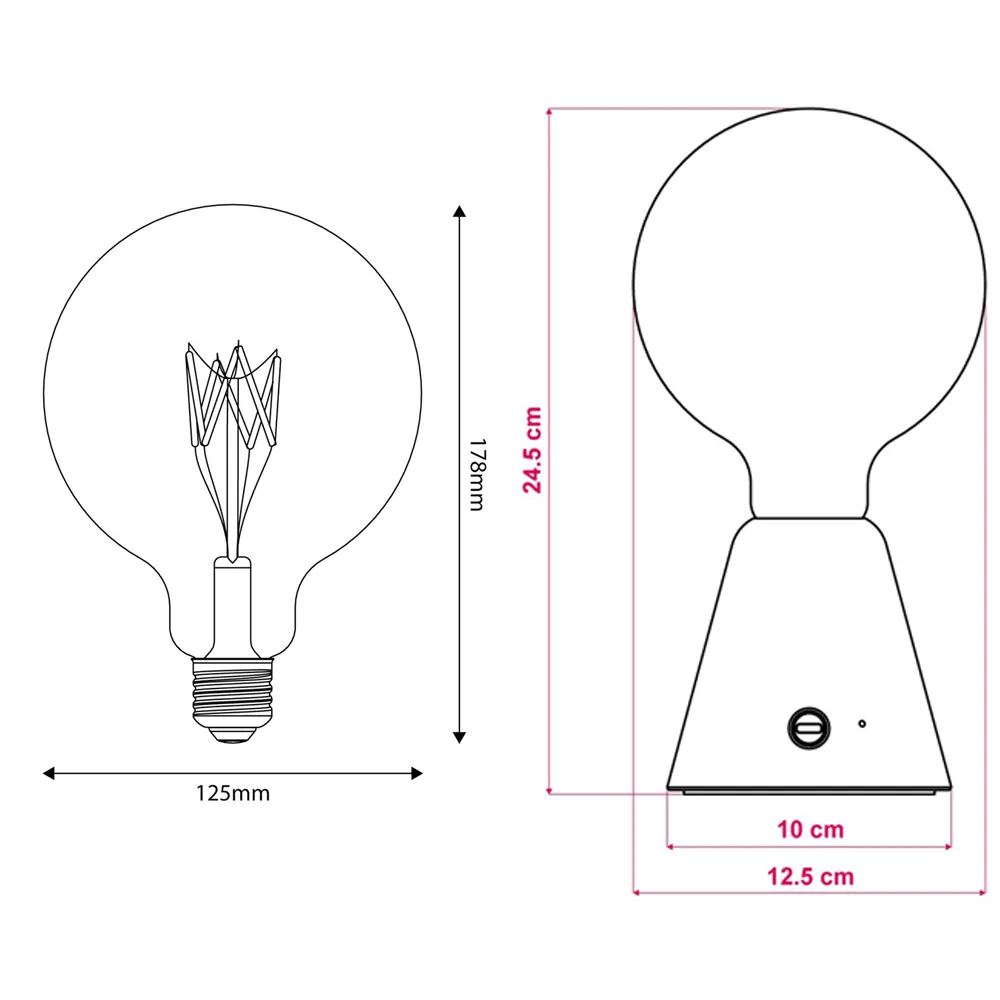 - Ampoule fournie : LED transparente 5V, 1.3 W, 110 Lumens, 2700 K, dimmable