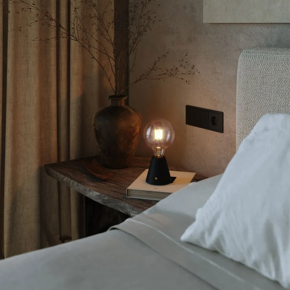 La lampe portative OUESSANT est alimentée par une batterie rechargeable (batterie Li-ion 18650) et n’est donc pas raccordée sur le secteur. Elle ne sera donc pas source de champs électrique 50/60 Hz comme toute autre lampe non blindée. De plus, étant nomade, vous pouvez donc l’utiliser en toute occasion : sur une table, un bureau ou en chevet.