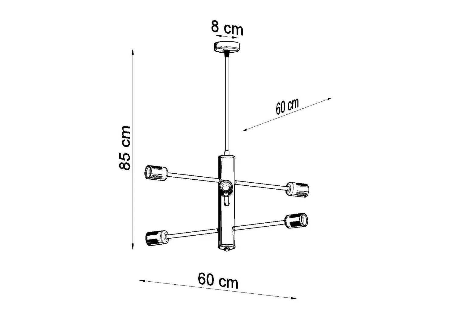 Lampe suspendu 6 ampoules en métal noir industriel