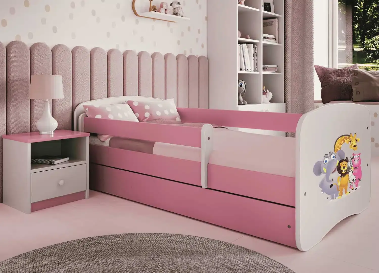 Ce lit pour enfant 1 place de thème animaux du zoo émerveillera tous les enfants amoureux des animaux. Ce lit enfant est fabriqué à partir de matériaux robustes et durables et de peintures et verni 100% écologiques. Les bords du lit sont arrondis et une barrière de sécurité permet d’éviter toute chute pendant le sommeil. Ce lit à thème animaux du zoo coloré dispose d’un sommier à lattes et d’un matelas en mousse pour un couchage confortable. Le tiroir sur roulettes offre 2 compartiments intérieur pour le rangement des jouets ou du linge de chambre.