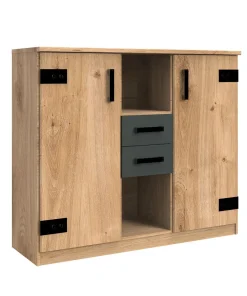 Un meuble bas de rangement au décor chêne poutre et gris graphite idéal pour y entreposer vos documents à portée de main dans votre bureau : 2 compartiments ouverts 2 portes et 2 tiroirs pour vos accessoires. N’attendez plus pour disposer d’un rangement complémentaire à ceux que vous avez déjà.