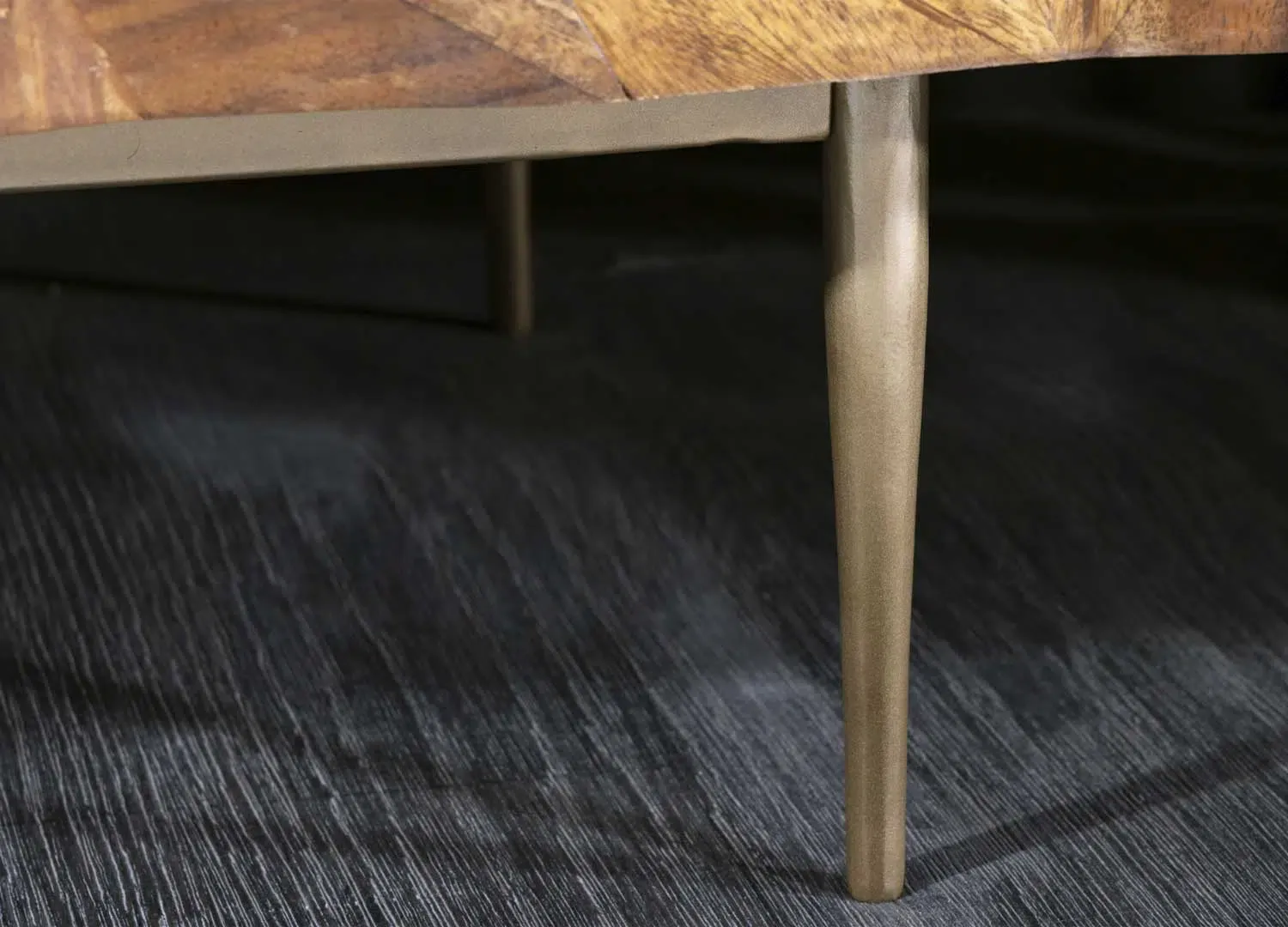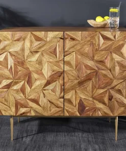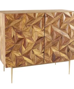 Découvrez le meuble de bar 2 portes, un véritable chef-d’œuvre du design. Fabriqué à la main avec du bois de Sesham massif, ce meuble est un gage de robustesse et de durabilité, tout en offrant une esthétique naturelle et chaleureuse. L’attrait principal de ce meuble de bar réside dans son décor 3D unique sur les façades, soigneusement façonné à la main. Cette caractéristique offre une touche d’originalité et d’exclusivité à chaque meuble, faisant de votre meuble de bar un meuble unique. Les pieds dorés ajoutent une touche d’élégance et de sophistication à l’ensemble, constituant un contraste parfait avec le bois de Sesham. De plus, les poignées dorées ajoutent non seulement à l’esthétique générale, mais garantissent également une facilité d’utilisation.