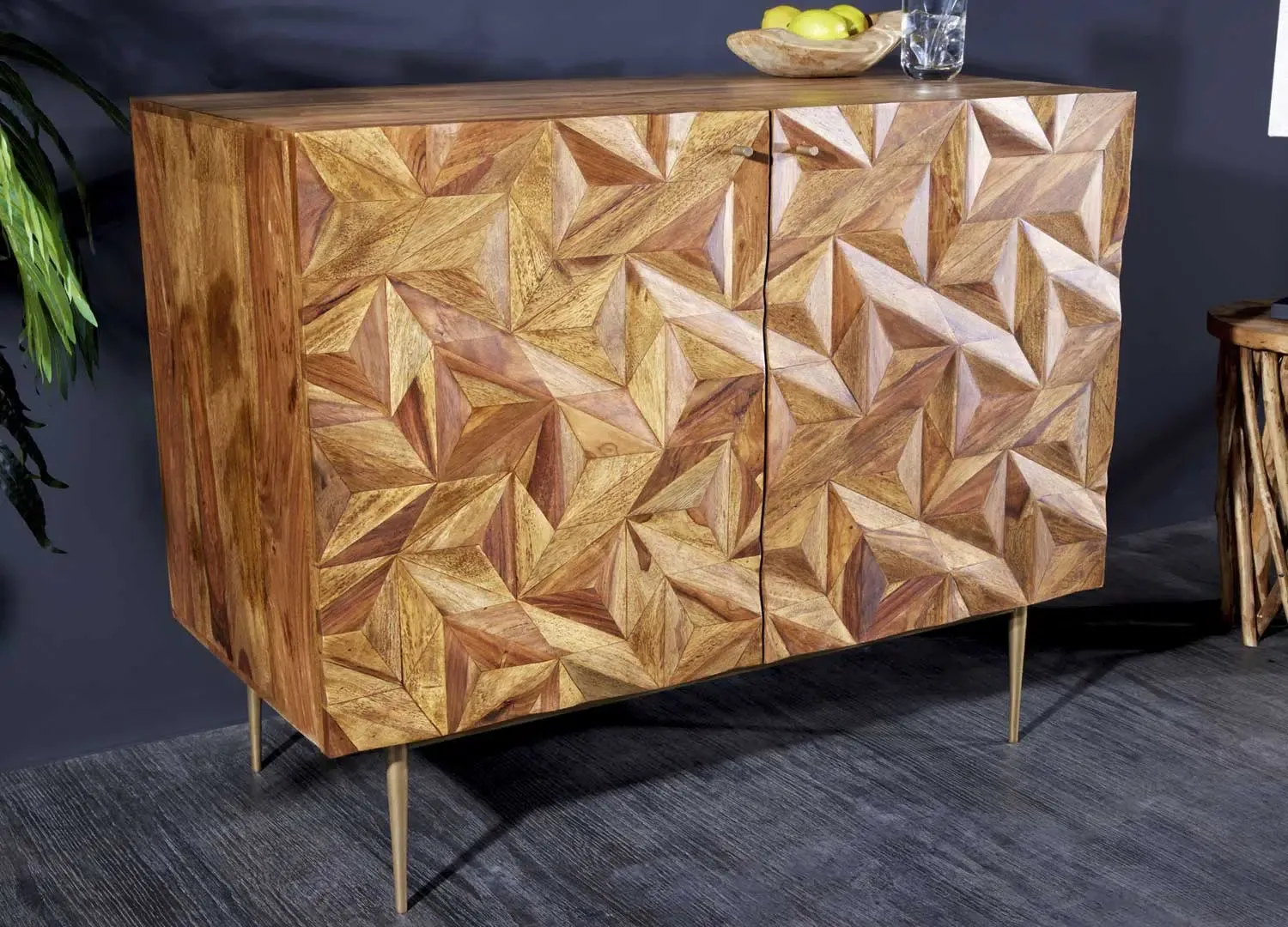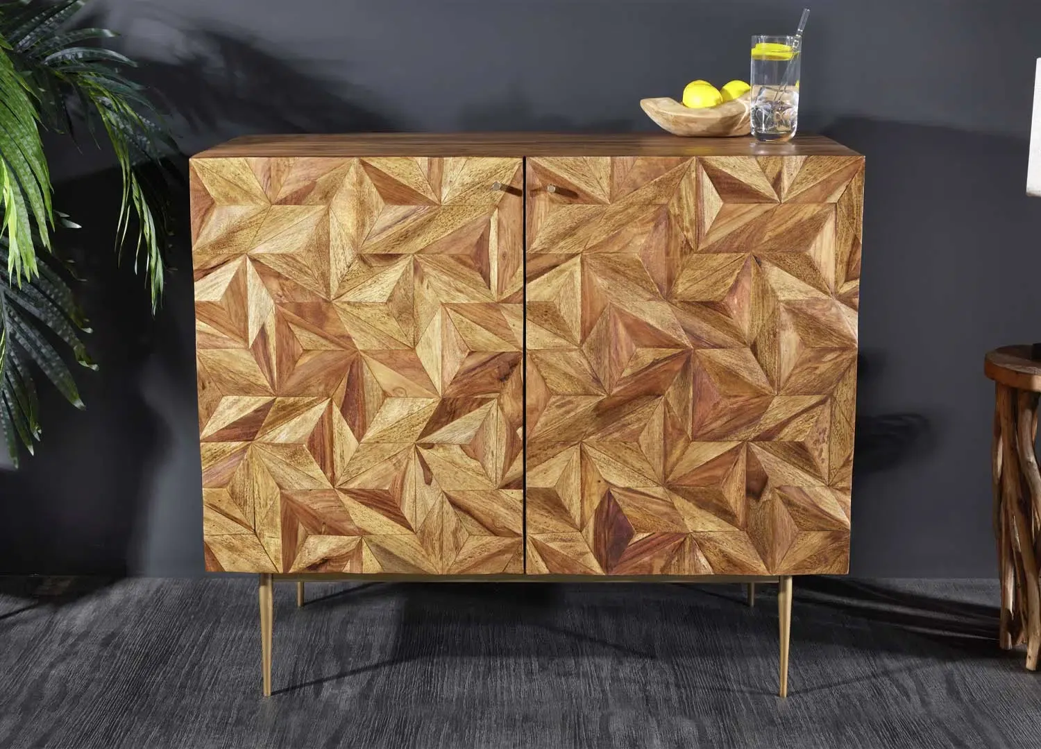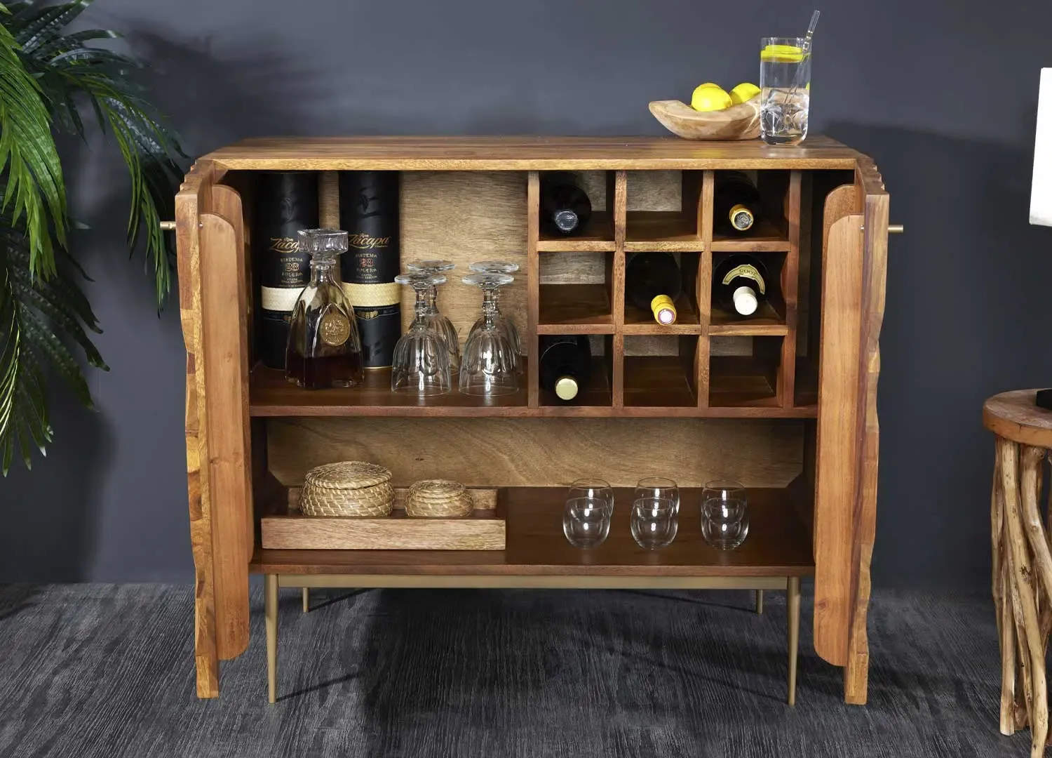 Meuble de bar en bois de Sesham massif avec décor 3D