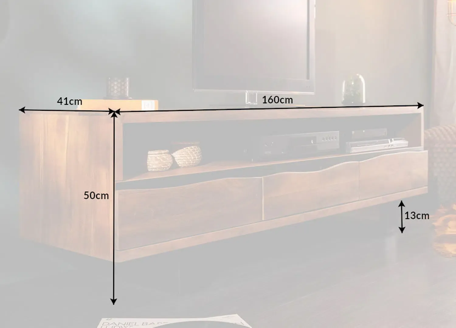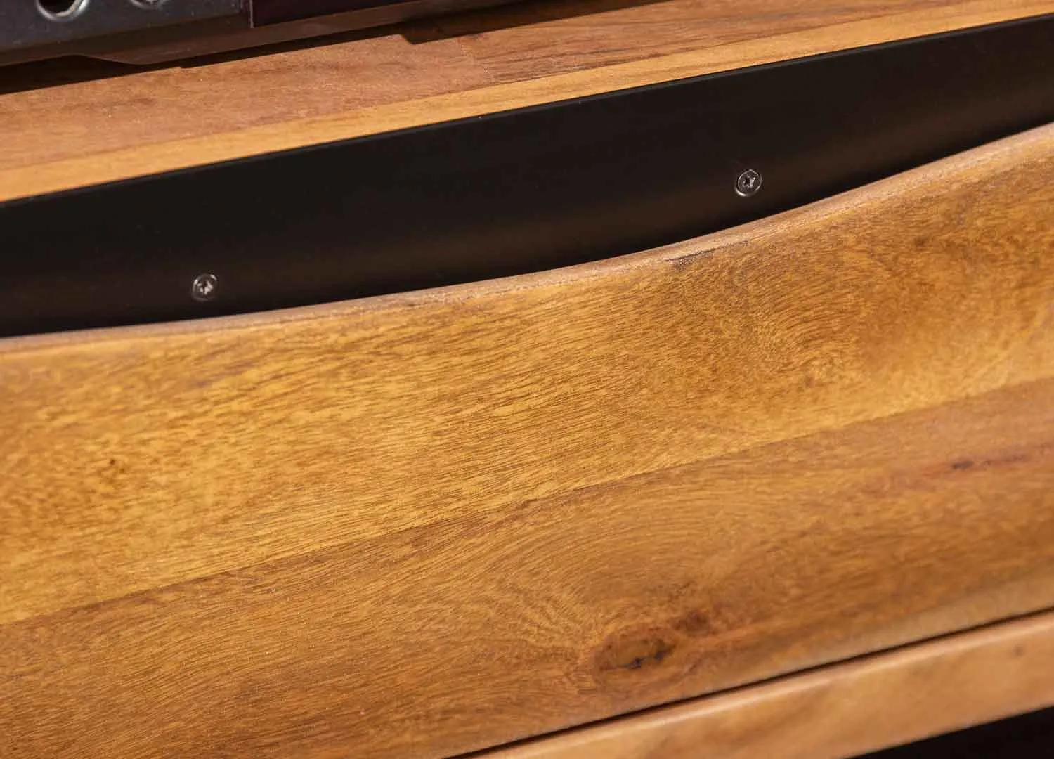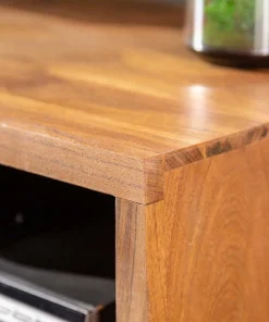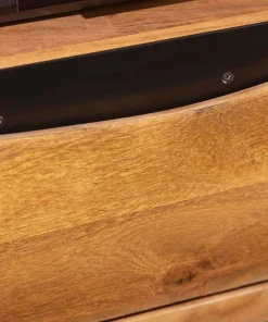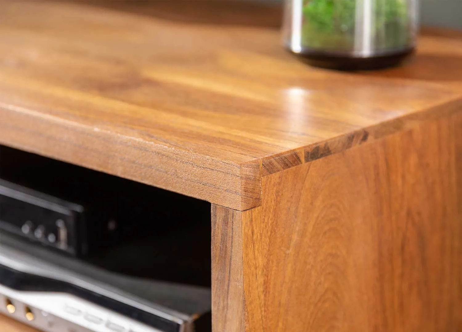 Ce solide meuble TV est visuellement attrayant, avec une finition de haute qualité et est fonctionnellement bien pensé. Tous les appareils multimédias et l’équipement nécessaire se positionneront dans la niche de rangement ouverte. Des tiroirs de rangement vous seront également pratiques pour ranger les télécommandes, bouquins ou encore manettes de jeu vidéo. Un meuble TV en bois d’Acacia massif qui ne manquera pas de vous satisfaire.