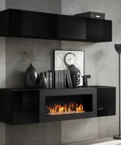 Ce meuble élégant et raffiné est parfait pour tout amateur de télévision. La finition brillante blanche ou noire ne manquera pas d’ajouter une touche d’élégance à n’importe quelle pièce, et les 2 placards et la cheminée bio éthanol décorative en font un meuble parfait pour ranger tous vos accessoires TV. Le meuble de rangement suspendu avec une porte est l’endroit idéal pour vos collections de dvd. Le meuble TV mural est l’ajout parfait à toute maison, et est sûr de devenir le centre d’attention dans n’importe quelle pièce !