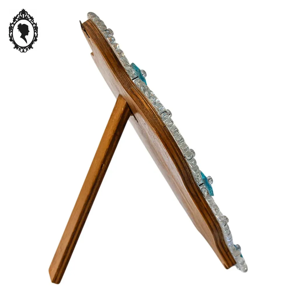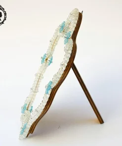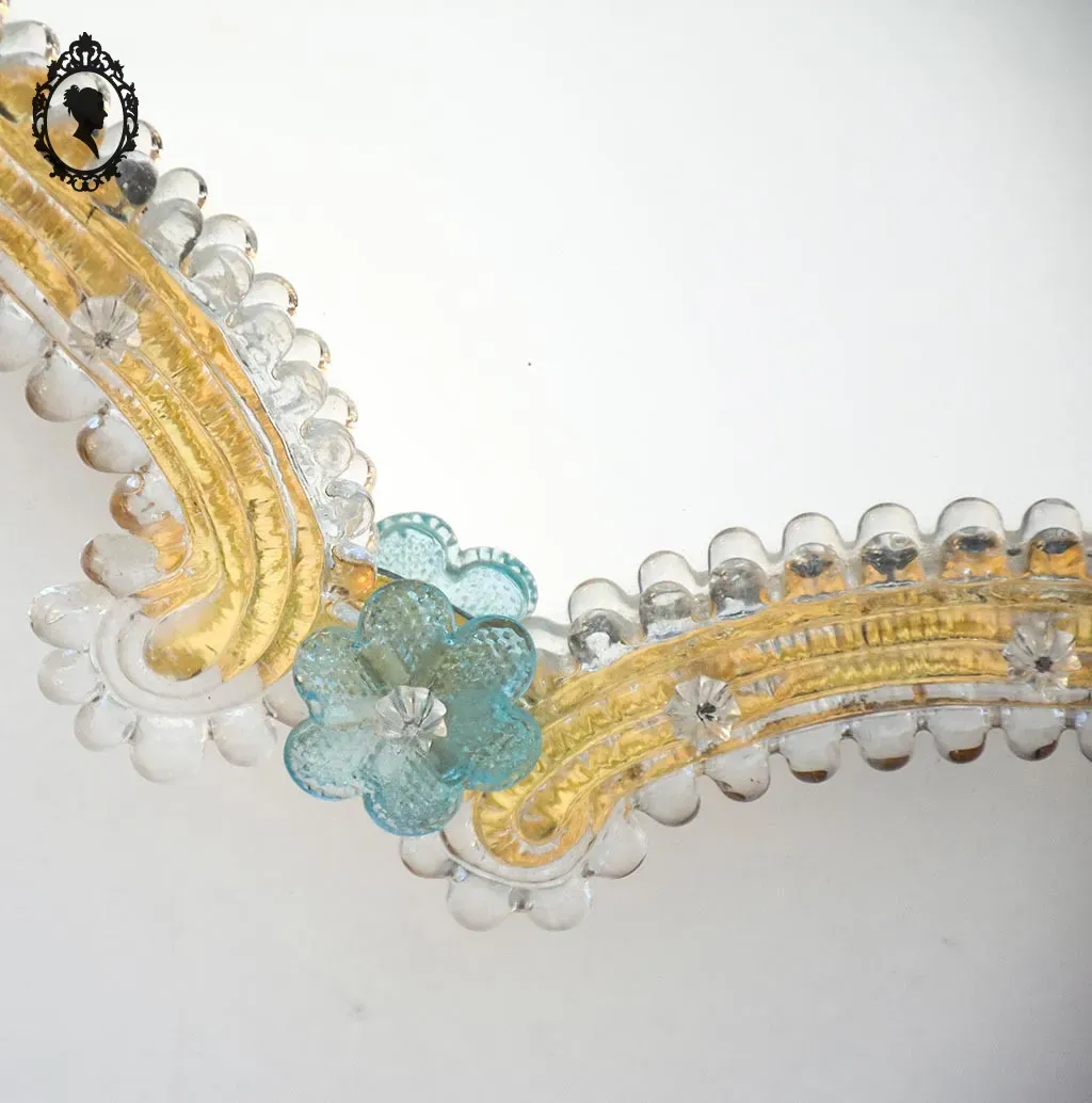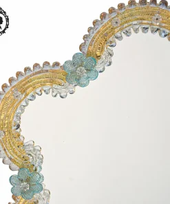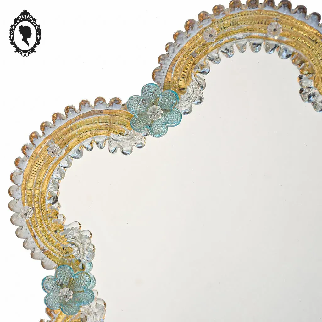 Miroir, miroir romantique, miroir charme, miroir shabby, miroir chic, miroir vénitien, miroir Murano, verrerie italienne, verrerie Murano, verre de Murano, miroir verre, miroir sur pied, psyché, psyché à poser, miroir à poser, miroir raffiné, miroir élégant, miroir bleu, miroir de table, miroir mural,