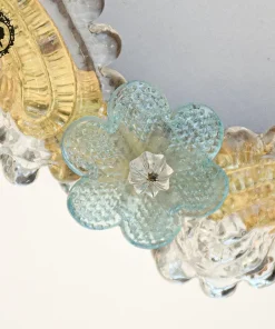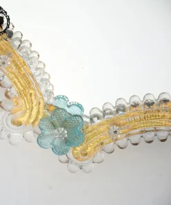 Miroir vénitien de Murano avec des ornementations fleuries en verre des années 1950 d’Italie.