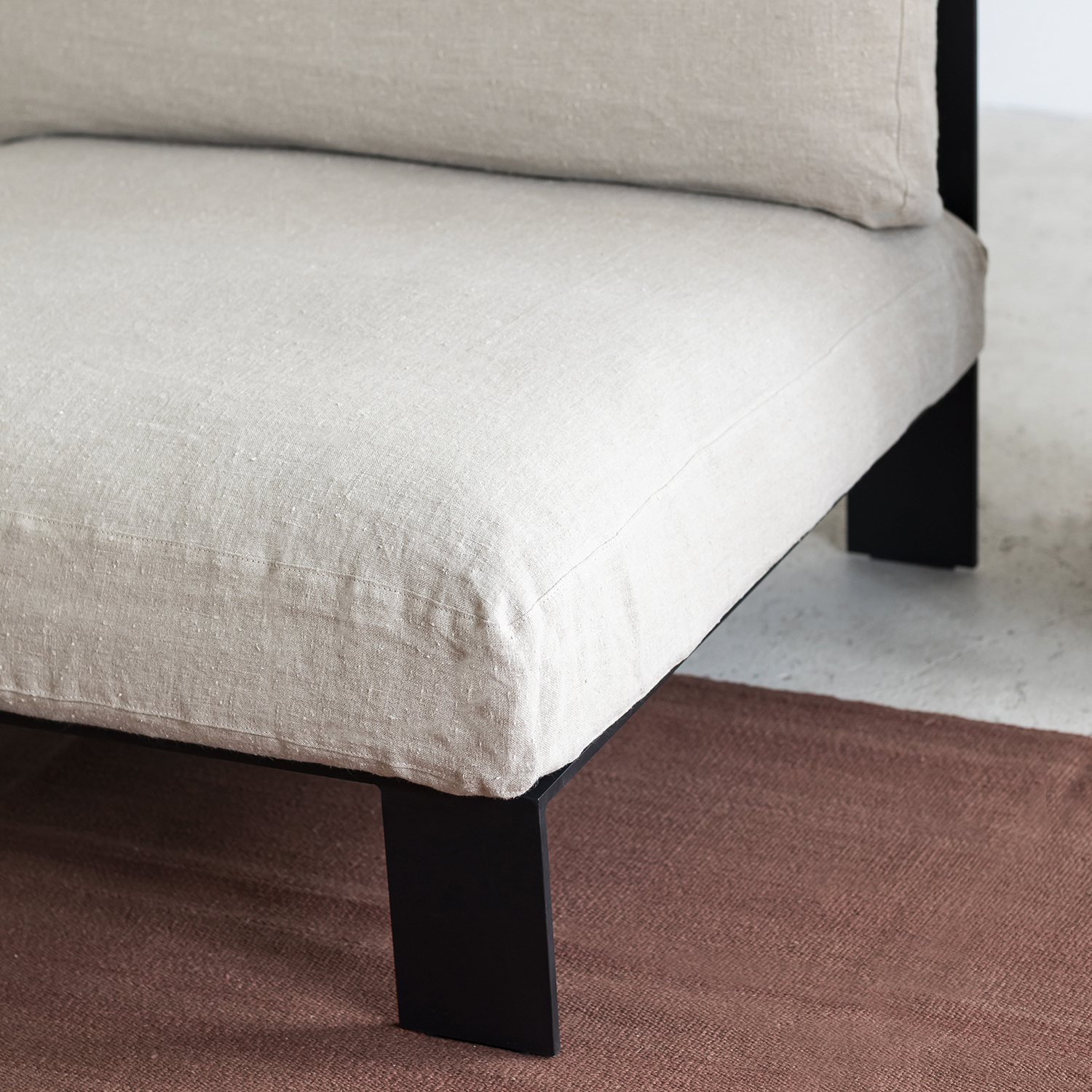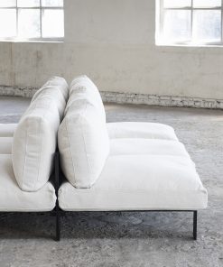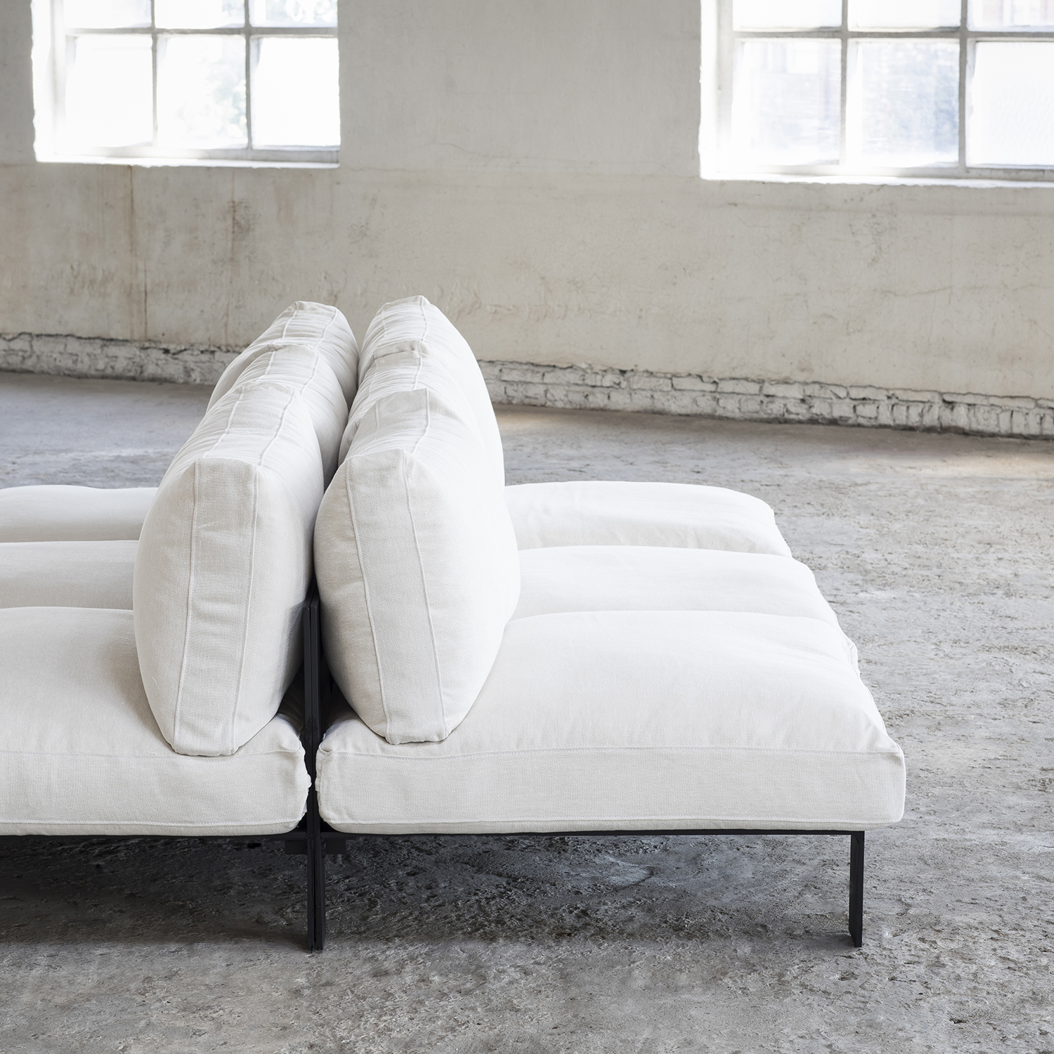 La collection de canapés Bea Mombaers for Serax se compose d’une monoplace, d’une 2-places, d’une 3-places et d’un pouf de la même taille que la monoplace. Tous les modèles sont fabriqués en aluminium noir pour une meilleure maniabilité et équipés de coussins moelleux pour apporter un grand confort. En combinant et en configurant les différents éléments, vous pouvez créer votre propre composition d’assises.