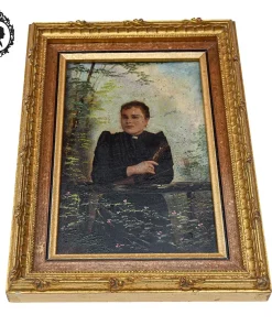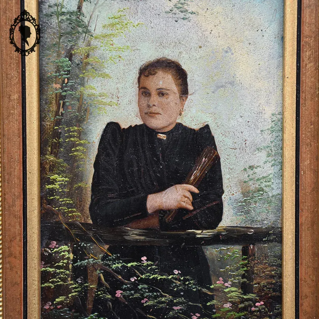 Peinture à huile d’un portrait de femme XIX ième