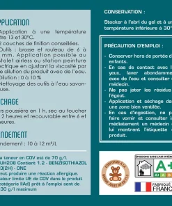 Son odeur faible permet de travailler dans un environnement agréable, tandis que son temps de séchage rapide de 6 à 8 heures permet de finaliser les travaux plus rapidement.