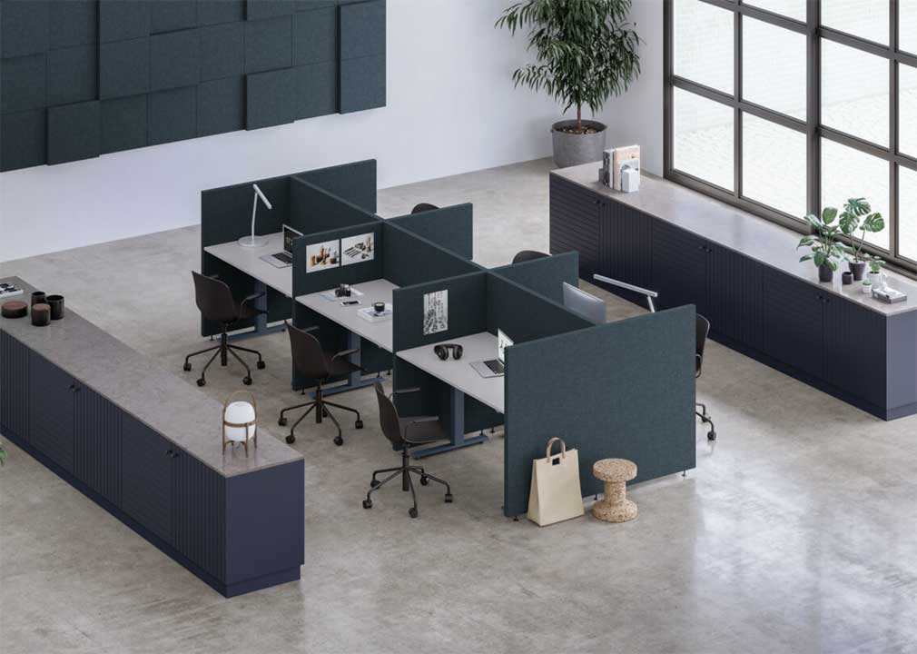 Soneo 30 est une gamme de cloisons acoustiques performantes pouvant s’intégrer dans de nombreux espaces de travail. Disponibles dans de nombreuses dimensions et coloris, Soneo 30 est composée d’une structure en bois garni de matériaux acoustiques absorbants, revêtu de tissu Salsa.