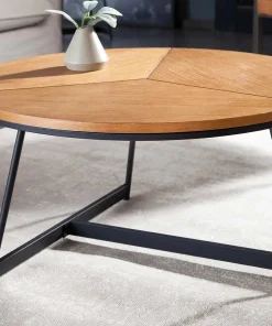 Une table basse ronde qui prônera le cœur de votre salon. Ce modèle au piétement noir design se marie à la perfection avec le plateau décor chêne naturel. Un modèle de 80 cm de diamètre pour y déposer livres et magazines. Une table basse de style industriel et contemporain qui se glissera dans tout type d’ambiance.