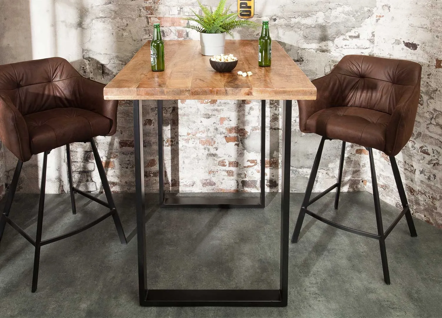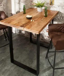 Notre table de bar est le complément parfait de votre maison. Avec son panneau en bois de manguier de haute qualité, ce design industriel est une pièce unique et attrayante pour tout espace. Cette table est fabriqué à la main avec un aspect de planche individuelle, ce qui lui donne une touche de charme rustique. Accordez cette superbe table de bar avec des fauteuils afin de créer votre espace festif et détente.