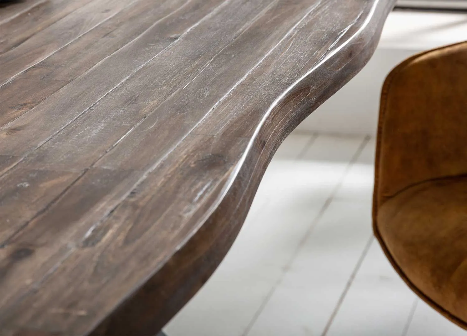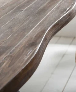 Avec cette table de salle à manger, vous donnerez à votre séjour un style rétro très recherché. Le bois massif d’Acacia foncé du plateau de la table de repas est fabriqué grâce à plusieurs planches de bois disposées les unes à côté des autres. Du fait des caractéristiques uniques de ces planches, le plateau de table peut présenter des reliefs hasardeux qui créent l’originalité de la table à manger.
