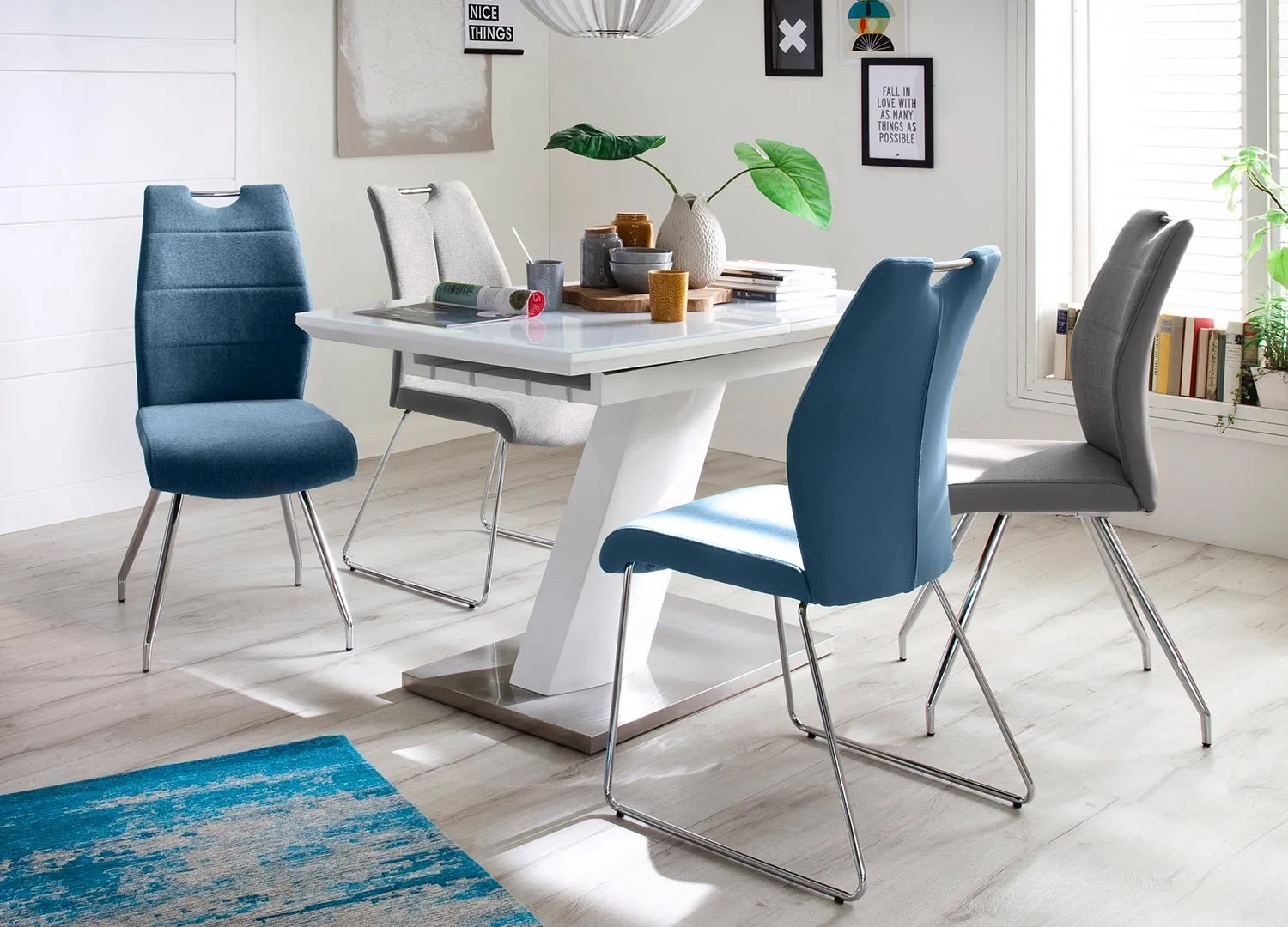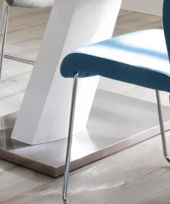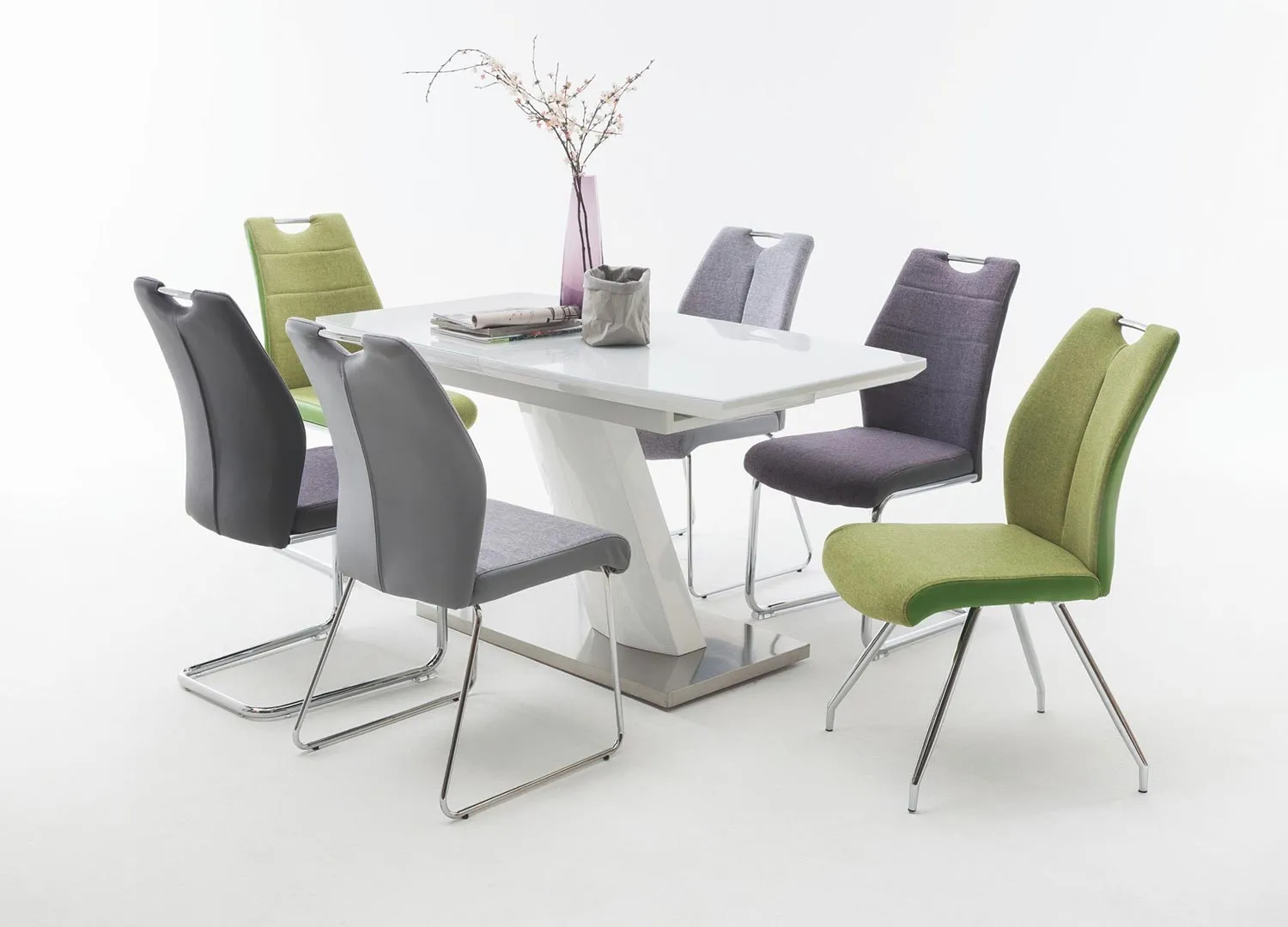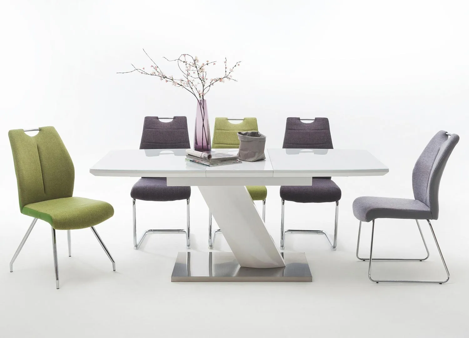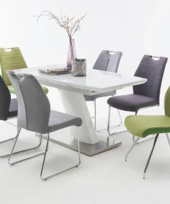 Une table de repas en bois laqué blanc possédant un plateau recouvert d’un verre blanc avec ouverture centrale pour ainsi effectuer la mise en place de sa rallonge. Cette table est disponible en 2 longueurs permettant d’assurer de 4 à 8 couverts. Son socle principal en acier brossé permet un équilibre parfait de la table. Cette table repas extensible blanche laquée a un vrai design moderne, avec son pied blanc laqué brillant incliné, cette table s’insert facilement dans une salle à manger épurée. Le verre trempé blanc disposé sur la table est un verre trempé SECURIT assurant une protection parfaite envers le risque de casse de la table.