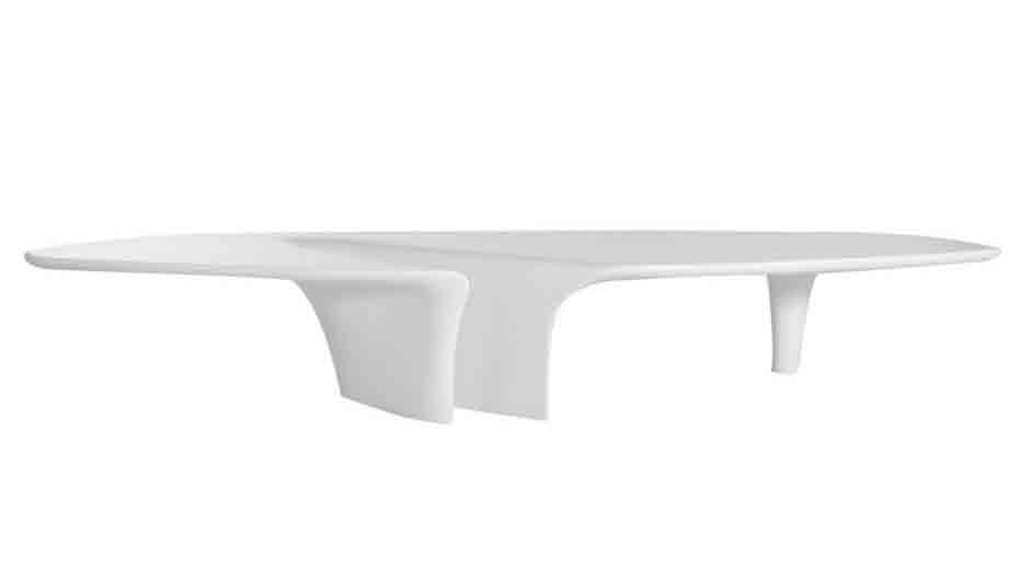 Cette superbe table basse design de Driade aux lignes atypiques est disponibles en 3 coloris : blanc, or et bleu.